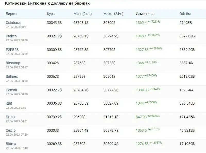 Утром 22 июня курс биткоина поднялся до 30 288 долларов. Рынок "выстрелил" вверх, когда сработал накопленный эффект позитивных новостных факторов – от договоренностей SEC и BinanceUS до открытия новых криптовалютных бирж.