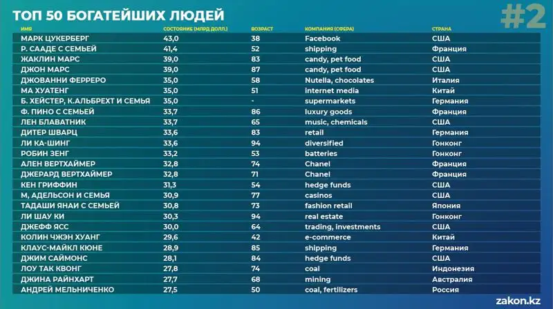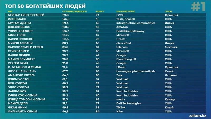 Гонки миллиардов: Каково совокупное состояние 50 самых богатых людей мира