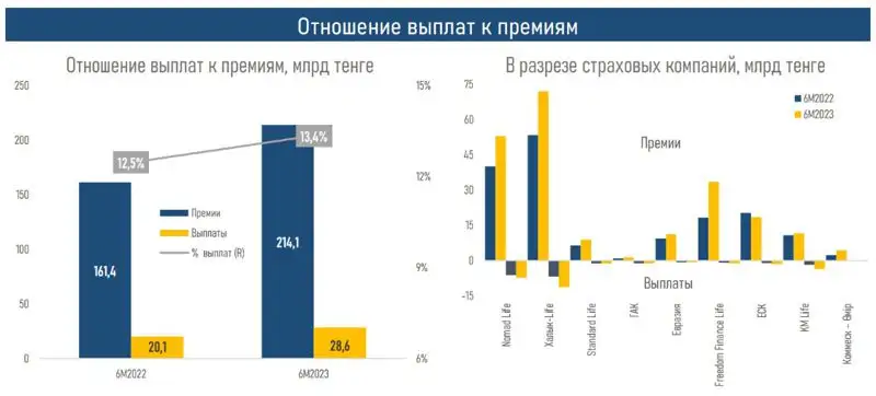 "Согласно данным S&P, годовые расходы казахстанцев на страхование жизни постепенно увеличиваются – 42 доллара в 2022 году против 29 долларов в 2020 году, оставаясь, однако, намного ниже показателей сопоставимых страховых рынков – около 100 долларов в Колумбии и Польше, около 200 долларов в Чехии и Уругвае". АФК