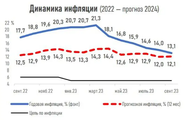 "Несмотря на устойчивое снижение годовой инфляции, в стране наблюдается постепенный рост месячных значений: в июне цены выросли на 0,5%, в июле — на 0,6%, в августе — на 0,7%. Соответственно, инфляционные ожидания участников опроса также несколько увеличились: 12,1% через 12 месяцев против прогноза в 11,8% месяцем ранее". АФК