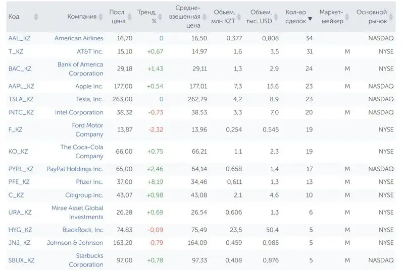 Если говорить подробнее об акциях на фондовом рынке РК, то инвесторы могут приобрести не только ценные бумаги местных, но и крупных зарубежных компаний.