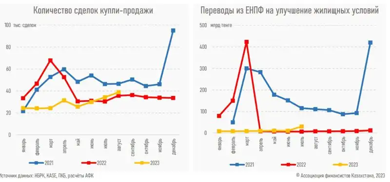 В АФК пояснили, что некоторое оживление сделок по купле–продаже жилья в июле–августе во многом обусловлено предоставлением пенсионерам права на использование всей суммы своих пенсионных накоплений на улучшение жилищных условий. К примеру, в июле изъято 30 млрд тенге против 10 млрд в июне.