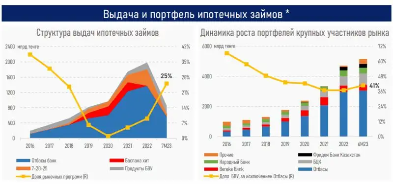 "После довольно сильного перегрева и продолжающегося сокращения льготных программ ипотечный рынок возвращается к своему естественному устойчивому росту. Соответственно, двузначное снижение выдачи новых займов в текущем году – вполне закономерное явление, в особенности с учётом роста ставок и ужесточения условий выдачи крупнейшим игроком на рынке – Отбасы Банком". АФК