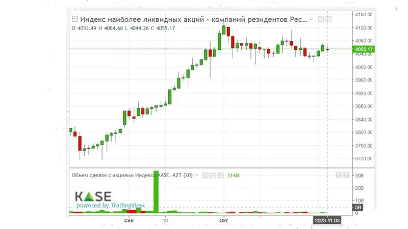 В четверг 2 ноября лидером стал БЦК, который продолжил рост после небольшой консолидации (+2,1%). В пятницу 3 ноября произошла коррекция индекса KASE. Лидерами снижения стали бумаги Казатомпрома (-2,3%) и КазМунайГаза (-0,3%).