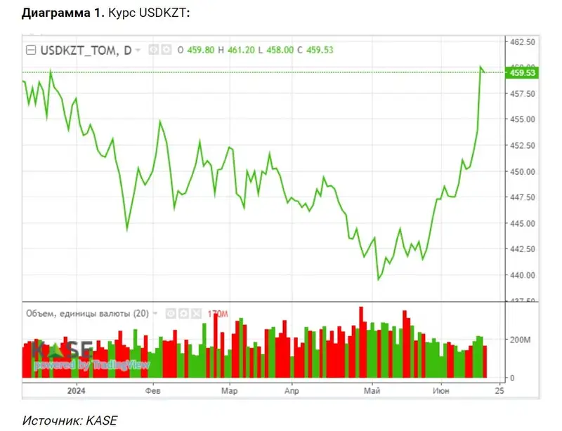 В результате курс по паре USDKZT в среду составил 459,76 тенге за доллар, показав рост на 1,61 тенге. Таким образом, дневной рост доллара заметно сократился после резкого скачка на 5,09 тенге во вторник.