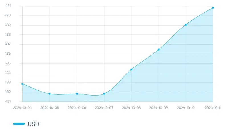 В целом прогнозируется, что на следующей неделе американский доллар может находиться в широком диапазоне 485-495 тенге, евро – 530-540 тенге, рубль – 5,00–5,15 тенге, китайский юань – 68-71 тенге.