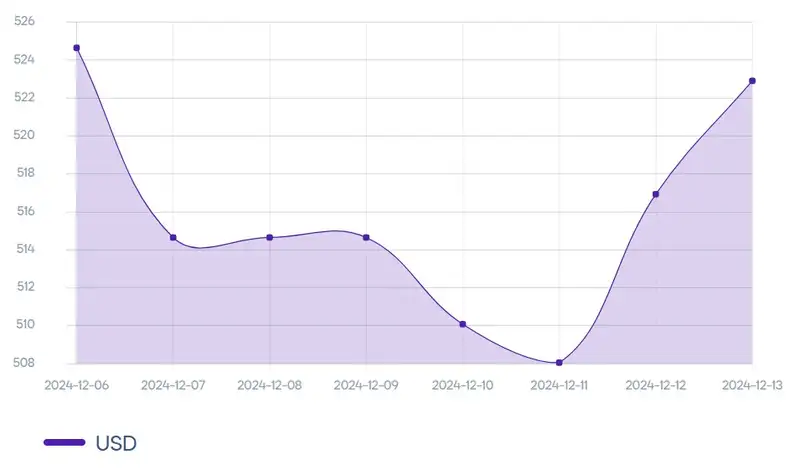 На текущей неделе курс национальной валюты продолжил ослабление. В пятницу, 13 декабря, средневзвешенный курс доллара составил 522,49 тенге согласно данным KASE.