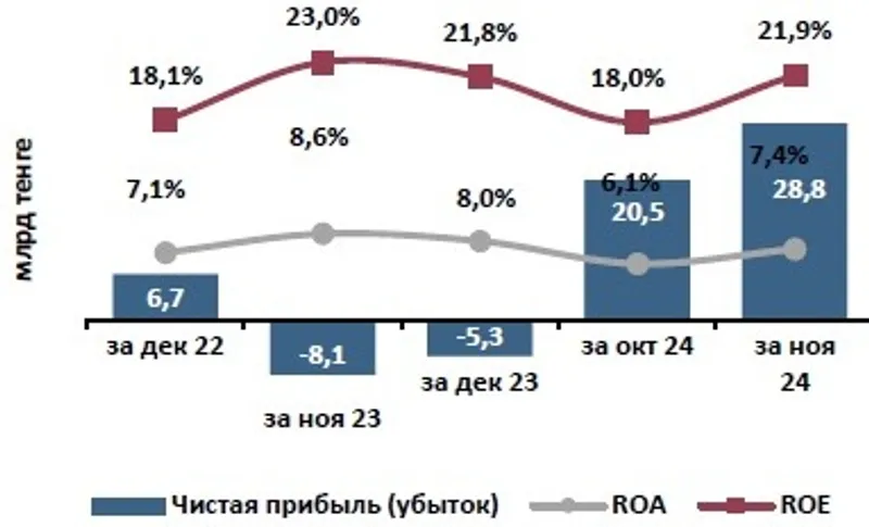 Заметно улучшились к концу и показатели доходности страхового сектора. Если в сентябре доходность (рентабельность) капитала (ROE) страховщиков была на уровне в 16,7%, то в ноябре она поднялась до 21,9%. Правда, нужно учесть, что в ноябре 2023 года значение этого показателя составляло 23,0%. Доходность активов (ROA) в сентябре прошлого года ROA сложилась на уровне в 5,7%, а в ноябре поднялась до 7,4%. Но это все еще меньше значения, достигнутого в ноябре 2023 года – тогда было 8,6%.