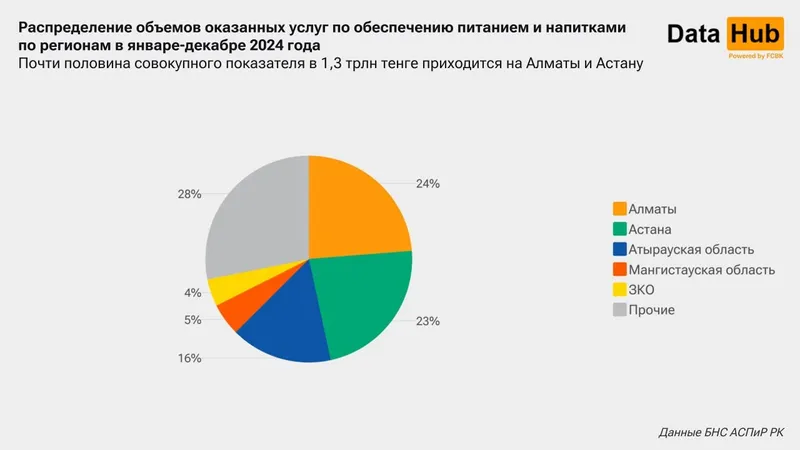 Почти каждый второй тенге в общепите приходится на Алматы и Астану, такими данными поделились в Первом кредитном бюро.
