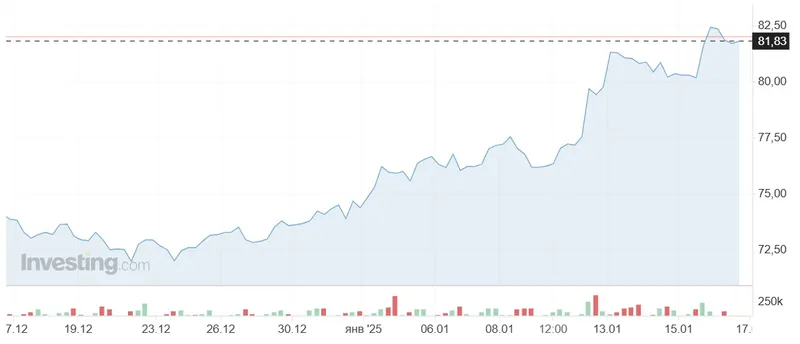 Тем временем на фоне ограничений цены на нефть к середине января 2025 года обновили четырехмесячные максимумы, нефть стабильно держится на уровне 80-82 доллара за баррель.