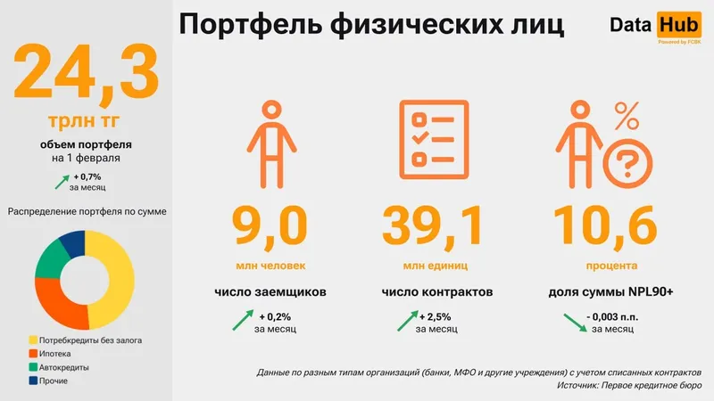 "Год к году, однако, показатель возрос, и сейчас в целом оказался ближе к тем уровням, что наблюдались до всплеска, который фиксировался во втором полугодии 2024-го. Общий объем ипотечного портфеля на 1 февраля, к слову, приблизился к 6,7 трлн тенге".ПКБ