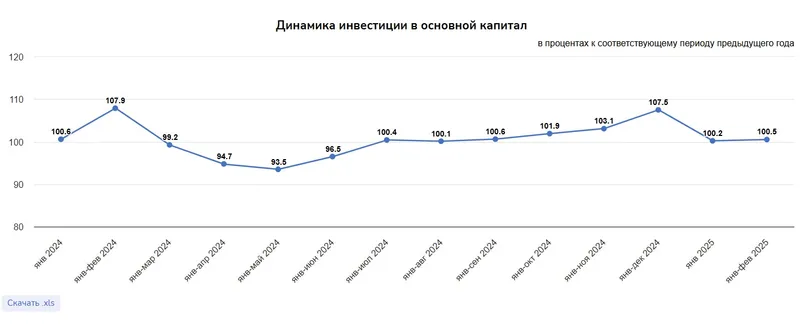 Основным источником инвестиций остаются собственные средства предприятий – 1,3 трлн тенге, что составляет 67,8% от общего объема (годом ранее – 79,6%). Однако значительное увеличение доли бюджетных средств вызывает обеспокоенность: в январе-феврале 2025 года они достигли 396 млрд тенге (21,3%), что является историческим максимумом. Для сравнения, год назад их доля составляла лишь 7%. Вклад банковского сектора в инвестиции сократился до 3,1% (4% годом ранее).