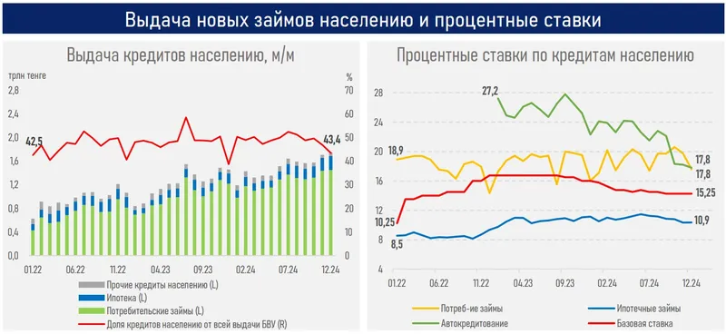 Между тем рост выдачи новых займов населению и его портфеля за два месяца 2025 года замедлился, что во многом отражает эффект рыночного насыщения, регуляторных мер, принятых во второй половине 2024 года, а также растущую склонность к сбережению ввиду высоких ставок по депозитам.
