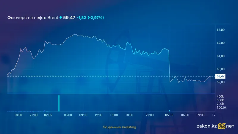 Фьючерсы на эталонную марку Brent подешевели до 59,3 доллара за баррель на 11:00 ( по времени Астаны), а американская WTI – до 56,19 доллара, достигнув минимальных значений с 9 апреля. Кратковременное восстановление котировок не изменило общую нисходящую тенденцию.