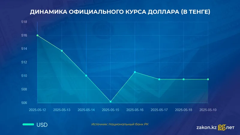 За неделю официальный курс доллара снизился на 1,3%, или на 6,5 тенге, согласно данным Национального банка РК. Курс на понедельник, 19 мая, установлен на отметке 509,5 тенге. Причем в течение прошлой недели валюта снижалась еще сильнее – до 506 тенге.