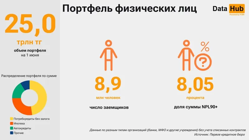 В итоге по состоянию на 1 июня 2025 года ипотечный портфель приблизился к 6,8 трлн тенге. Эта сумма приходится на 617 тыс. заемщиков и 645 тыс. кредитов.