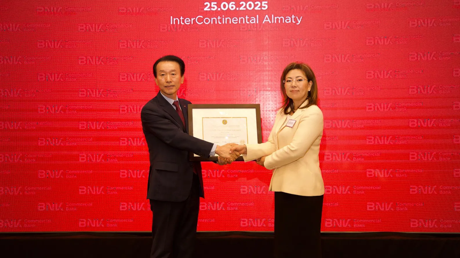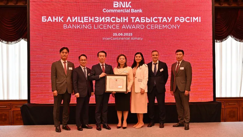 Во время торжественной церемонии председатель Агентства по регулированию и развитию финансового рынка Мадина Абылкасымова вручила лицензию на осуществление банковских операций Председателю BNK Capital господину Ким Сонг Джу. Глава Агентства отметила, что появление нового иностранного участника расширит конкуренцию в банковском секторе, что даст импульс развитию новых банковских продуктов и росту кредитования малого и среднего бизнеса.