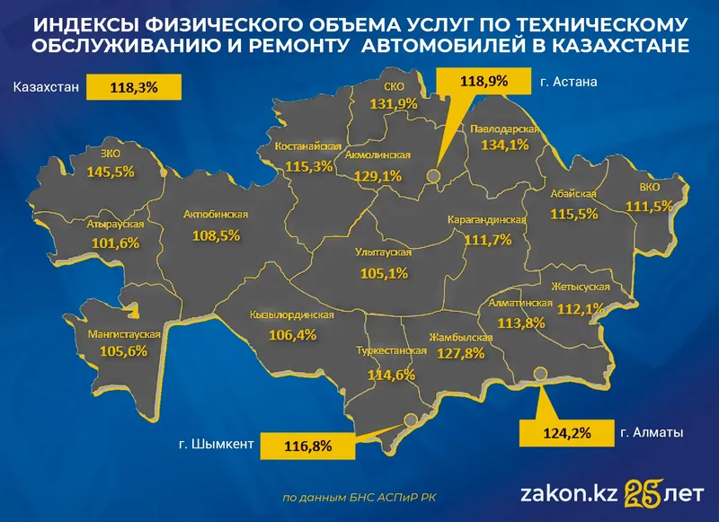 Итак, где же прячется самая большая наценка? Данные показывают, что цены на СТО растут во всех регионах страны, но с заметным разрывом. Если вы живете в Западно-Казахстанской области, будьте готовы к тому, что ремонт обойдется вам на 45,5% дороже, чем в прошлом году. Это антирекорд по стране! Вслед за ней идут: