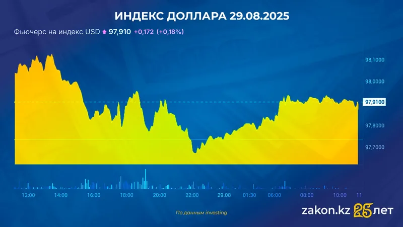 Динамика последних месяцев показывает, что в конце лета 2025 года негативное движение замедлилось: за три месяца падение, по данным Investing, составило лишь 1,34%, а за последние сутки индекс даже вырос на 0,15%, поднявшись до отметки 97,91 (на 12.00 по времени Астаны). Рынок замер, ожидая сигналов, которые определят дальнейшую судьбу доллара.