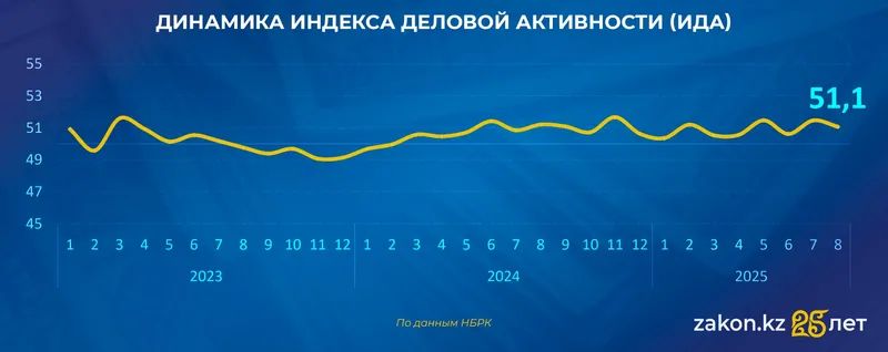 Интересно, что за первые шесть месяцев 2025 года индекс деловой активности (ИДА) в Казахстане демонстрировал разнонаправленную динамику. Начав год с умеренного замедления, бизнес-среда пережила некоторое оживление весной, но в июне вновь показала признаки ослабления.