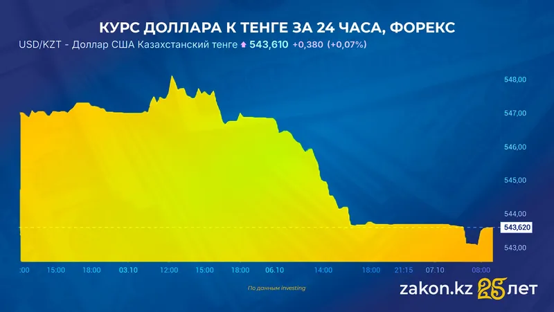 Старший специалист инвестиционной компании Ергазы Таубаев полагает, что в ближайшие три дня курс доллара к тенге в среднем составит 543 тенге. В более долгосрочной перспективе, к 17 октября, ожидается постепенный возврат к отметкам в 545 тенге.