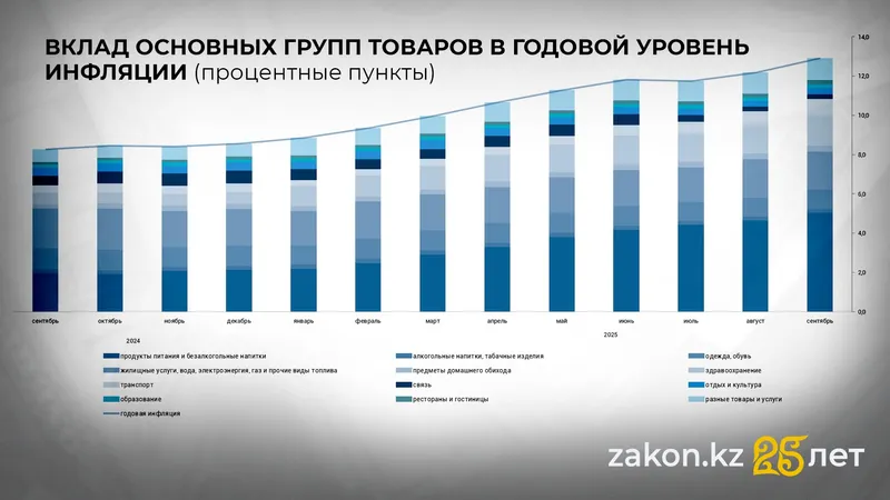 "Рост инфляции зафиксирован по всем основным метрикам. Годовая инфляция в сентябре ускорилась до 12,9% (в августе – 12,2%), превысив прогноз Нацбанка. Наибольший вклад в инфляцию по-прежнему вносит продовольственная компонента (рост на 12,7%). Опережающими темпами дорожают отдельные категории продовольствия, что обусловлено в том числе ростом издержек производства и стоимости импорта. Сервисная инфляция также сохраняет значимый вклад (15,3%) как за счет удорожания регулируемых услуг (30,4%), так и ряда рыночных. Ускоряется непродовольственная инфляция (10,8%), на фоне продолжения мер по либерализации рынка ГСМ цены на топливо за год выросли на 11,9%".