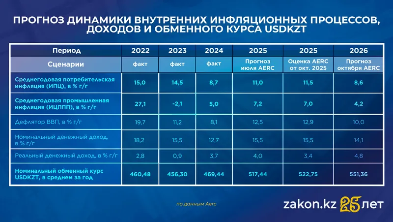 Экономика Казахстана выросла на 6,3% (г/г) за девять месяцев 2025 года. Эти фактические данные стали сигналом для пересмотра ожиданий AERC по росту ВВП на 2025 год с 5,0% до 5,7%. Прирост инвестиций в основной капитал также повышен до 12,9% (по сравнению с 12,2% ранее), что объясняется заявленными мерами поддержки.