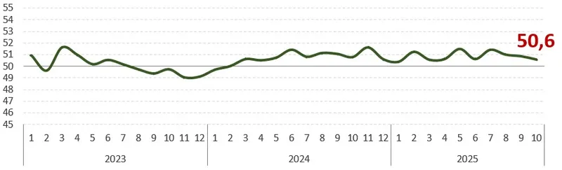 "В октябре 2025 года индекс деловой активности составил 50,6 (50,9 в сентябре). Индикатор находится в позитивной зоне с марта 2024 года".Рустем Оразалин