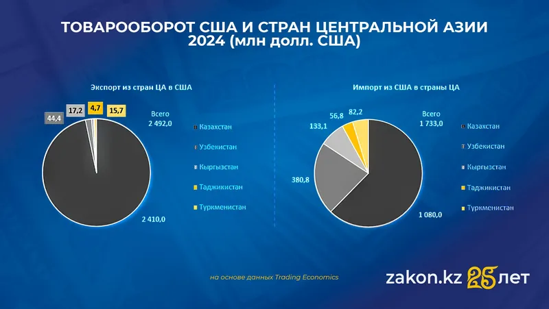 При этом в масштабах мировой торговли доля региона остается незначительной: на страны Центральной Азии приходится менее 1% внешнеторгового оборота США, где основными партнерами остаются Мексика, Канада и Китай. В 2024 году экспорт США составил 2,1 трлн долларов, а импорт – 3,4 трлн долларов.