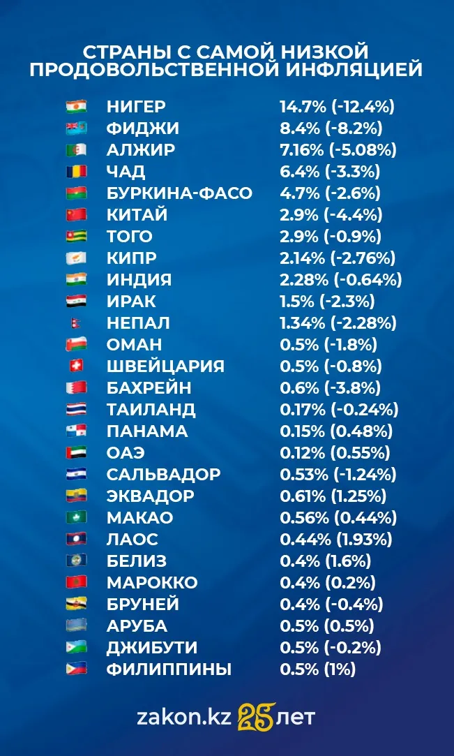 Согласно последним данным, Казахстан с годовой продовольственной инфляцией в 13,5% (по сравнению с 12,7% месяцем ранее) входит в верхнюю двадцатку стран с самым высоким ростом цен на продукты. Наше положение в этом рейтинге отражает сохраняющиеся внутренние дисбалансы, включая ценовые и кредитные факторы.