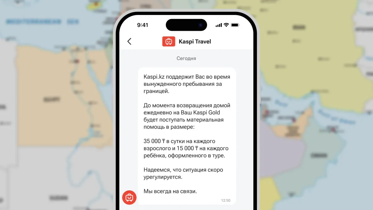 Kaspi.kz принял решение оказать материальную помощь клиентам, которые приобрели туры или авиабилеты "туда-обратно" через Kaspi Travel и в настоящее время пребывают в странах Ближнего Востока либо оказались там в качестве транзитных пассажиров.