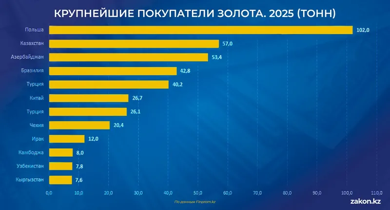 Когда центральные банки наращивают запасы на исторических максимумах, это сигнал не спекулятивный, а стратегический. Резервы используются для стабилизации валюты и снижения зависимости от отдельных иностранных активов, поясняют аналитики Finprom.kz.