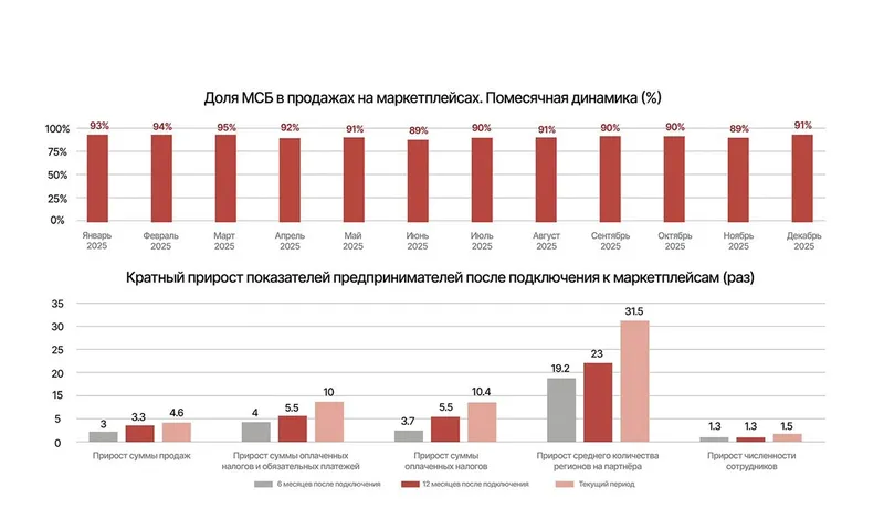 "Интересная информация. На маркетплейсах большинство – 90% – это МСБ. По сути, маркетплейсы для МСБ стали неким рабочим местом, через которое они реализуют свои товары и услуги. МСБ и маркетплейсы стали неотъемлемой частью друг друга. Но что еще интереснее – это то, как малый и средний бизнес чувствует себя на этих маркетплейсах. В результате исследований выяснилось, что за год, или 12 месяцев, налоговая база вырастает практически в 10 раз, штат сотрудников вырастает в 3 раза, более чем в 5 раз вырастает выручка предпринимателей, которые начинают торговать на маркетплейсах. То есть если офлайн-магазин превращается в онлайн-участника маркетплейса, его показатели в 4-5 раз увеличиваются", – отмечается в исследовании Ranking.kz.