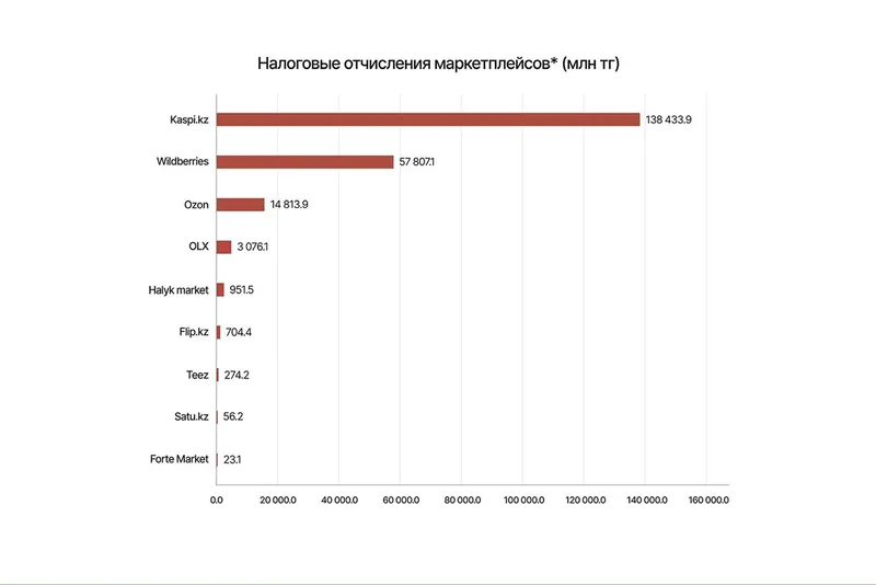 "Поговорим о зарубежных маркетплейсах и посмотрим на них через призму налогов. С 2022 года есть так называемый "Налог на Google", это постановка на учет на НДС, и на этом все. Такие IT-гиганты, как Alibaba, Temu, становятся на учет на НДС, но при этом не локализуют свой бизнес. Можно посмотреть как раз на цифры. Самые крупнейшие представители – более 86 представителей зарубежных IT -компаний за январь-сентябрь 2025 года заплатили примерно 39 млрд тенге. При том что топ-3 самых крупных маркетплейса в Казахстане – Kaspi.kz, Wildberries и Ozon за прошлый год заплатили в бюджет 211 млрд тенге. И здесь, конечно, возникает логичный вопрос, почему так происходит. Самое ключевое, что влияет и создает неравные условия между казахстанскими маркетплейсами и теми же зарубежными китайскими, – это то, что у казахстанских список налогов и других платежей длинный", — приводит данные Асретов.