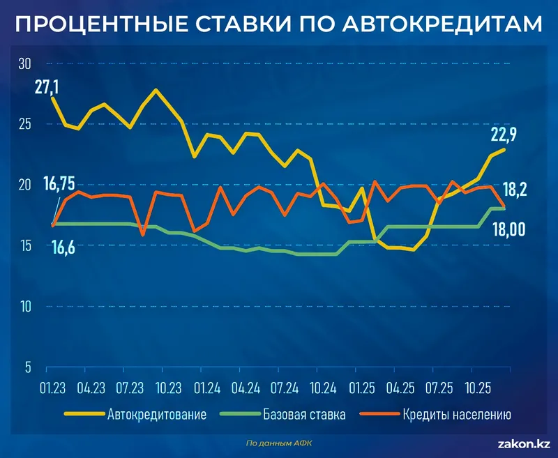 Во второй половине 2025 года начали проявляться признаки насыщения сегмента. После периода снижения ставки по автокредитам стали расти – с 14,6% до 22,9% – вслед за удорожанием фондирования и завершением маркетинговых программ автодилеров.
