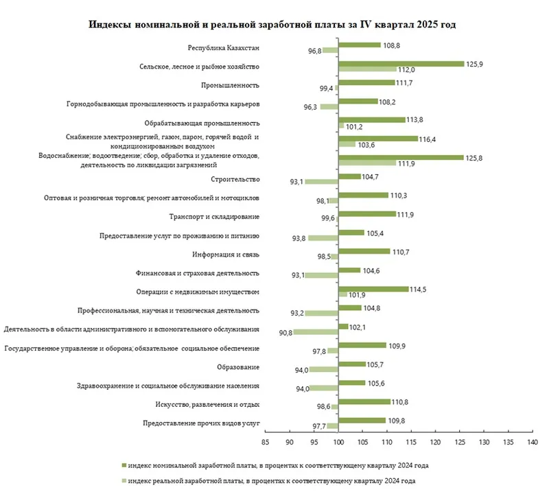 Сегодня, 3 апреля 2026 года, пресс-служба Бюро национальной статистики (БНС) Агентства по стратегическому планированию и реформам Казахстана предоставила информацию о заработной плате за IV квартал 2025 года, сообщает Zakon.kz.