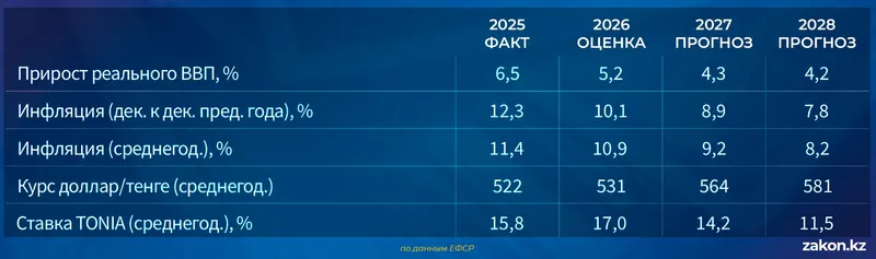Экономика Казахстана сегодня напоминает хорошо разогретый двигатель: она работает на пределе возможностей, но дальнейшее ускорение без структурных реформ грозит перегревом. По оценкам ЕФСР, после мощного рывка 2025 года (6,5% роста ВВП), в 2026 году нас ждет закономерное замедление до 5,2%.