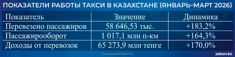 Доходы от такси достигли 65 273,9 млн тенге, увеличившись на 170,0%