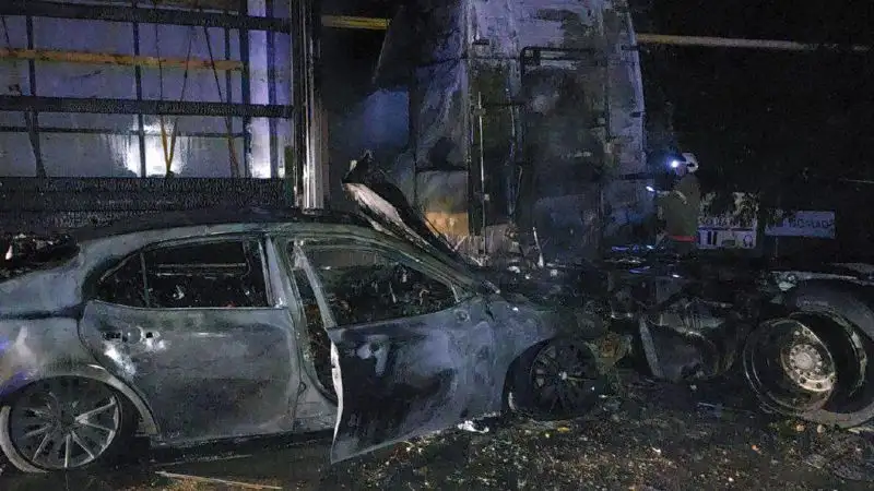 Два автомобиля сгорели при ДТП в Алматинской области