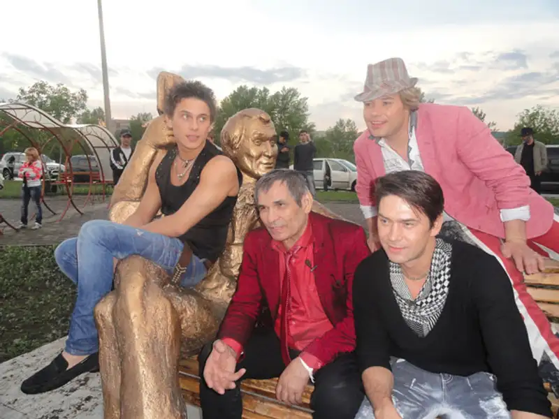 Аким города Серик Таукебаев проводил Бари Каримовича и его группу на аллею Влюбленных, где их уже ждали поклонники у скульптуры - парень с гитарой.