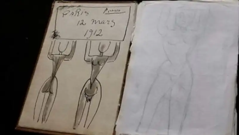 Блокнот содержит около 30 эскизов обнаженных женщин, сделанных акварелью, углем, а также карандашом. Под несколькими набросками стоит подпись «Пикассо», а один их них содержит надпись: «Париж. 12 марта 1912. Пикассо».