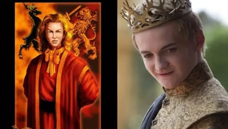 Джоффри Баратеон, плод инцеста Джейме и Серсеи Ланнистер, в книге более высокий, чем Джон Сноу и Роб Старк, хотя он и младше их обоих. У него должны быть длинные золотые кудри, глубокие зеленые глаза и пухлые капризные губы. В сериале у актера Джека Глисона нет никаких кудрей, но капризы своего персонажа он изобразил отлично.