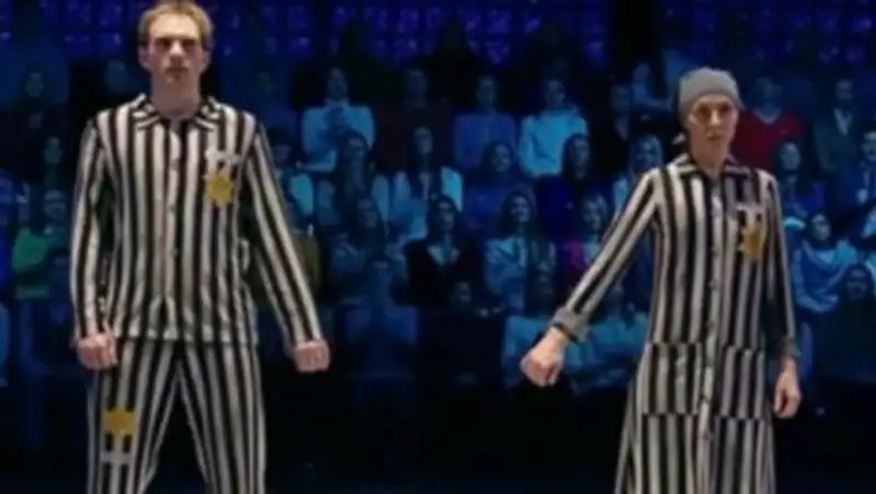 На протяжении номера Татьяна Навка и актёр Андрей Бурковский выделывают пируэты на льду, при этом периодически улыбаются, получают аплодисменты публики. И максимальные баллы от жюри. Оба участника при этом одеты в полосатые робы с нашитыми жёлтыми звёздами Давида — Навка и Бурковский изображают евреев-узников концлагерей. Знаменитая фигуристка и жена пресс-секретаря президента Дмитрия Пескова объяснила: в основе номера её любимый фильм Жизнь прекрасна. Его сняли по биографии Рубино Сальмони – итальянского еврея, узника Освенцима, он описал своё пребывание в лагере смерти в книге «Я победил Гитлера». В соцсетях многие пользователи осудили этот номер шоу. Один из них Артём Романов написал: «отправить их туда, где такие пижамы бесплатно выдают». Обсуждение как отмечает сайт Медиаликс, было бурным и порой нецензурным. Многие указывали на несколько неуместный сценический образ. Впрочем, были и те, кто защищал исполнителей. Один из них в твиттере отметил: «на тему Холокоста снимают фильмы, пишут картины, почему эта тема не может быть осмысленна в таком виде?».
