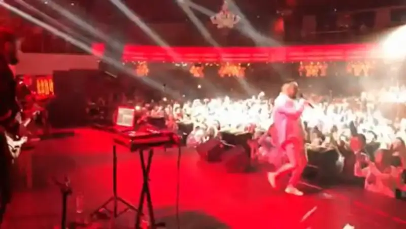 Отмечается, что артист поднялся и, несмотря на падение, отряхнулся и продолжил выступление.