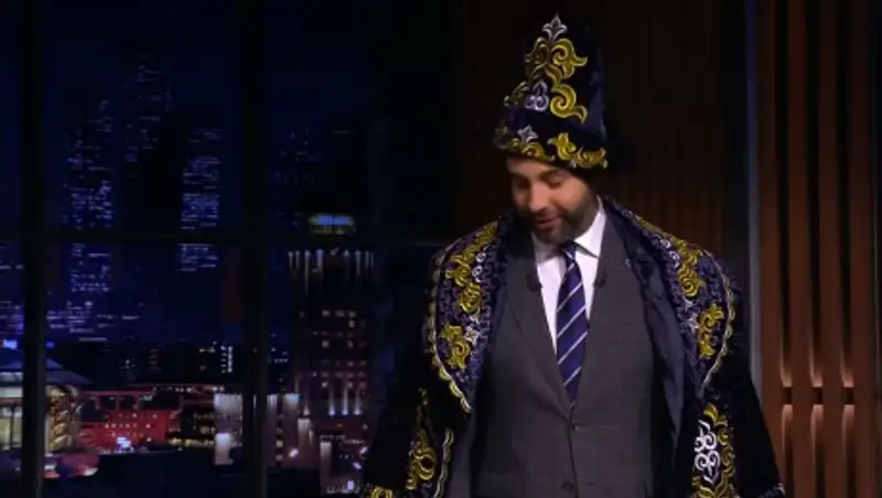 - У казахов есть (традиция). Уважаемым людям у нас дарят чапан. Хочу воспользоваться моментом, - сказал певец и облачил ведущего в чапан.