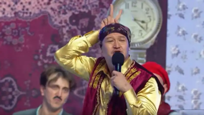 Тогда "Камызяки" "порвали" зал шуткой про Магрипу Харипуллаевну. Фронтмен команды Азамат Мусагалиев в образе судьи Камызякского суда заявил, что его жену зовут Магрипа Харипуллаевна, а за глаза он зовет ее Катькой.