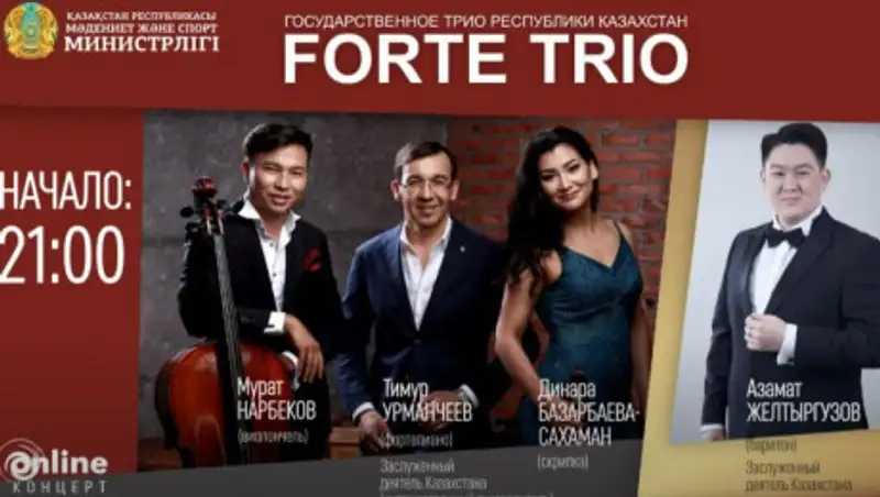 Известный казахстанский оперный певец Азамат Желтыргузов и Государственное трио "FORTE-TRIO" под руководством заслуженного деятеля РК Тимура Урманчеева с большим успехом выступили 5 мая с онлайн-концертом в рамках проекта Министерства культуры и спорта РК "Звезда на карантине", сообщает zakon.kz.