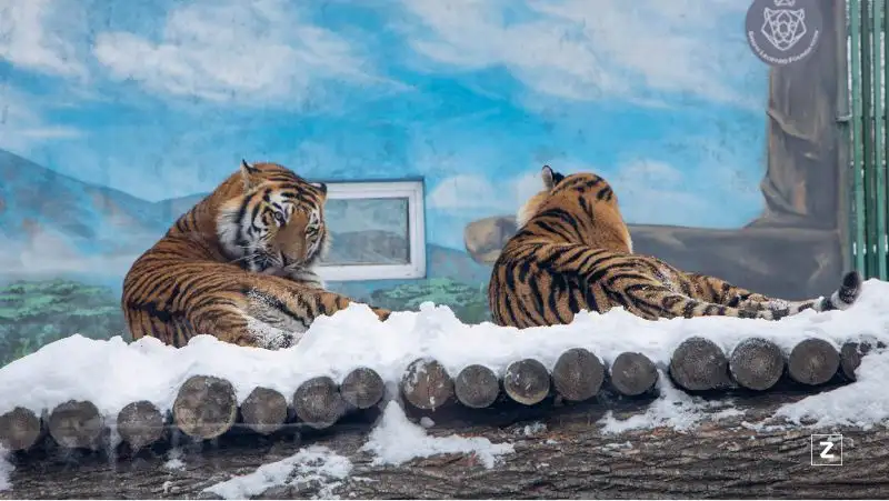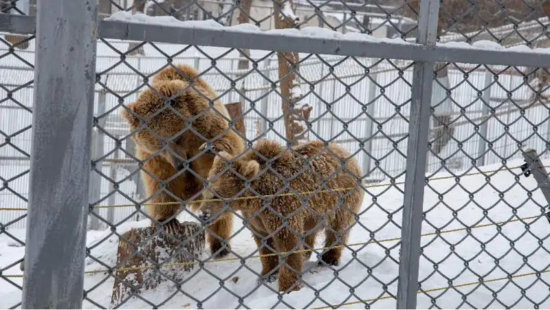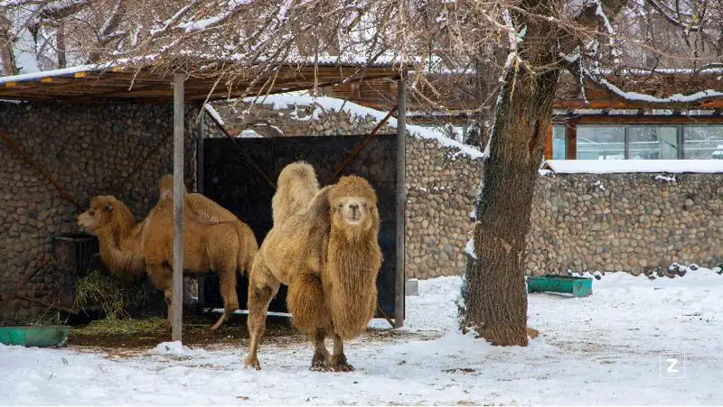 Половина обитателей зоопарка привыкла к климату Казахстана. Поэтому зимой и летом они живут на улице. Это большинство птиц, олени, верблюды, амурский тигр, волки.