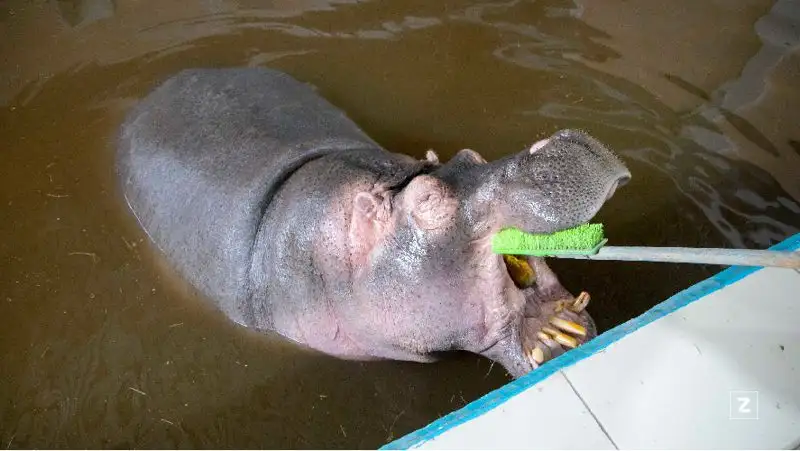 В зоопарке также живут два бегемота. Одного привезли из Израиля, другого – из Франции. Гигантам регулярно чистят зубы.