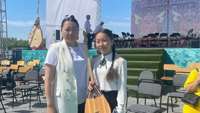 Для участия в фестивале «Күмбірле домбыра», преодолев долгий путь из Шетского района, приехала юная участница Саят Аймира.
